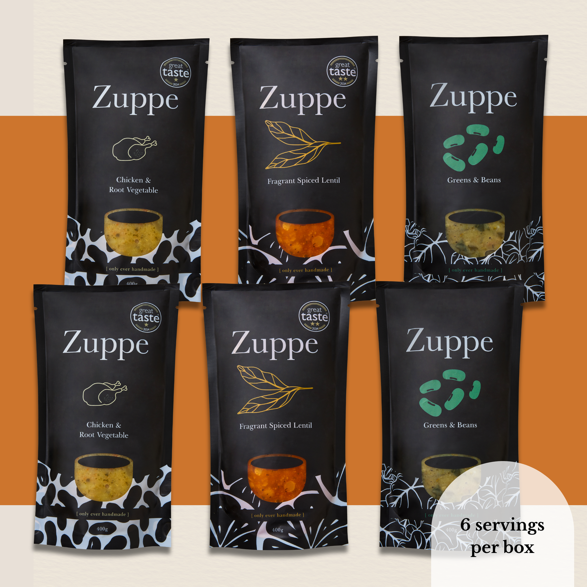 NEW! A winter-curated 6 pack of our most comforting and indulgent handmade soups — freshly prepared in our kitchen, chilled for freshness, and delivered straight to your door. Inside you will receive 400g single serving packs of: